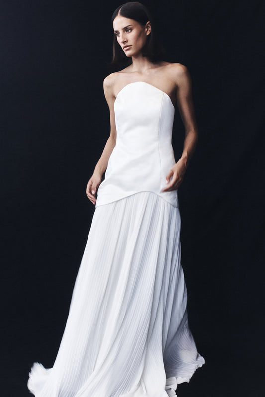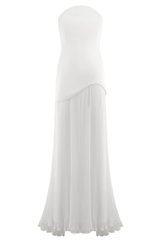 Juno Strapless Pleated Maxi Gown - White