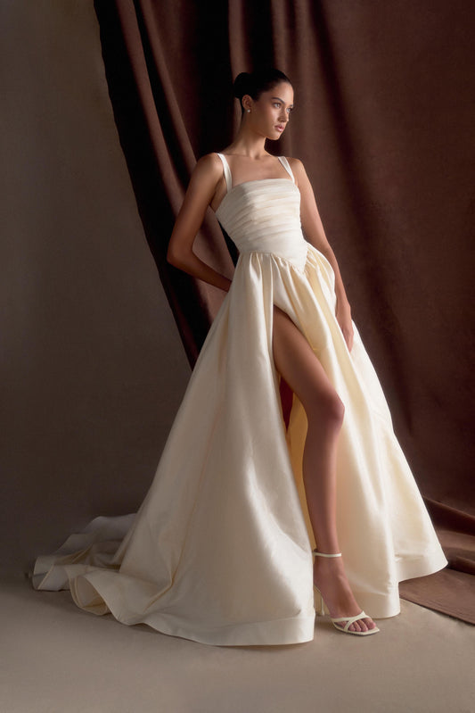 Carla Ruched Gown - Cream Ivory