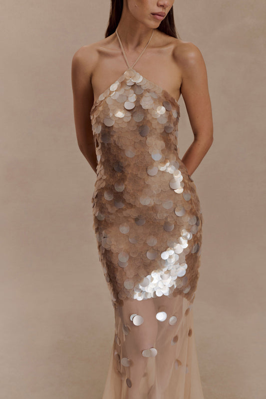 Porter Hand Beaded Midi Dress - Gold
