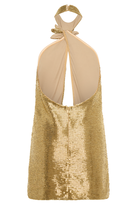 Hand Beaded Midi Dress - Gold