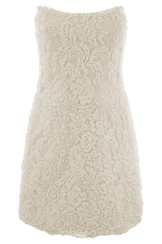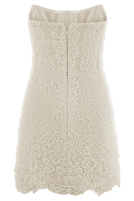 Hand Beaded Pearl & Lace Mini Dress - White