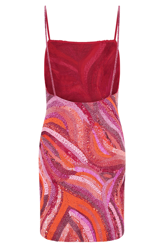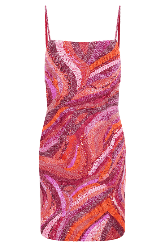 Eloise Hand Beaded Mini Dress - Pink Swirl Print