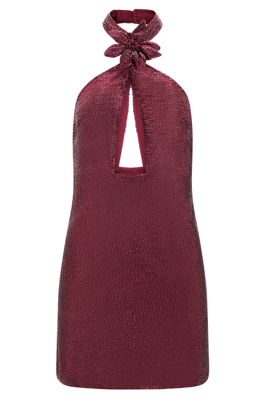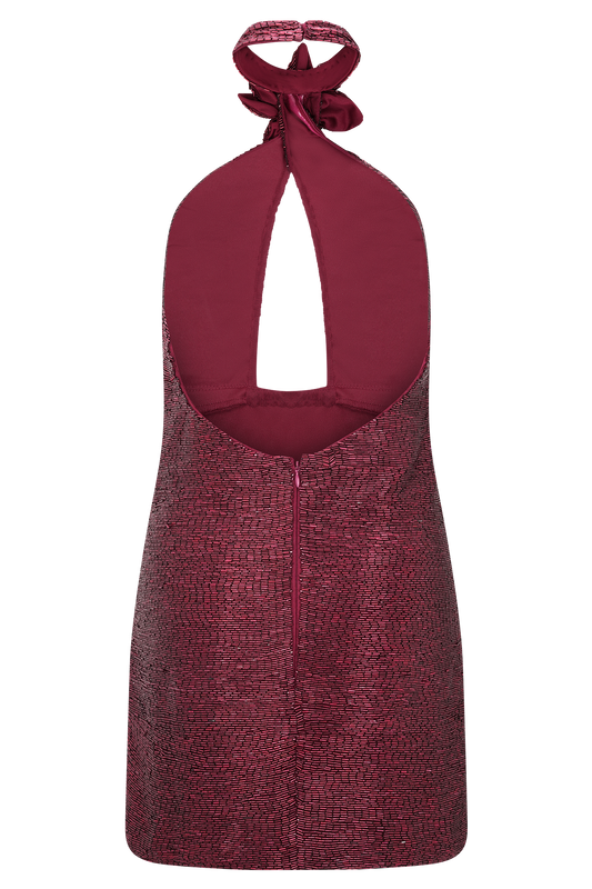 Hand Beaded Mini Dress - Pink Swirl Print