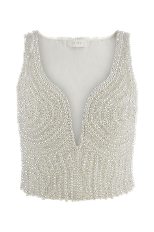 Pearl Hand Beaded Top - White