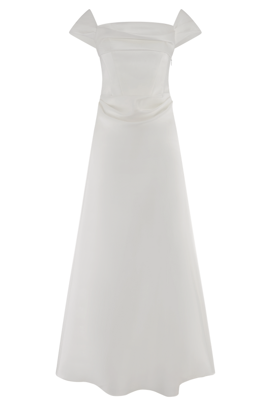 Luna Satin Off Shoulder Gown - White
