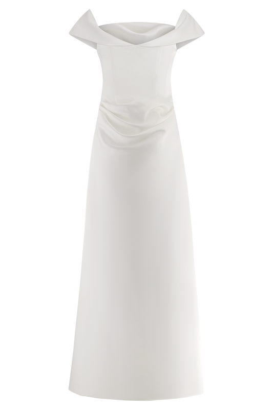 Satin Off Shoulder Gown - White