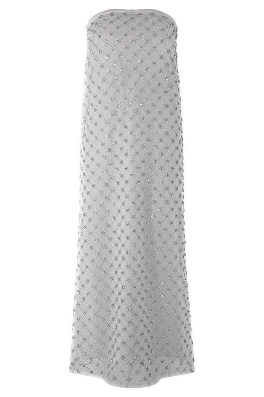 Zuri Hand Beaded Embellished Maxi Skirt - Silver