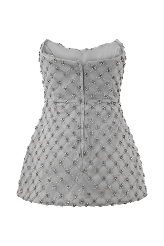 Zuri Hand Beaded Embellished Peplum Corset - Silver