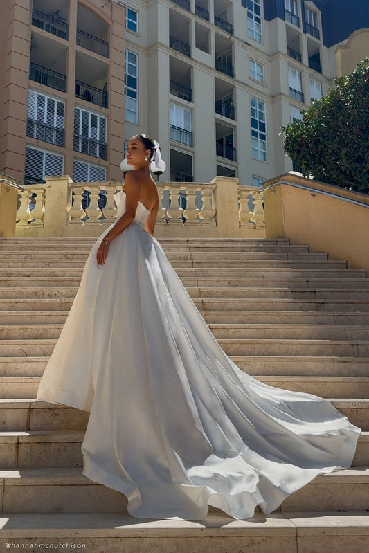 Delphine Satin Strapless Maxi Gown - White