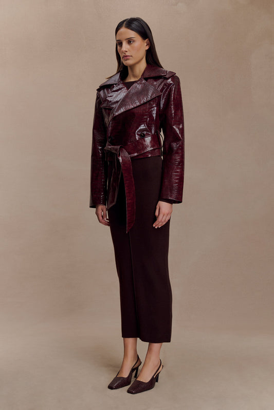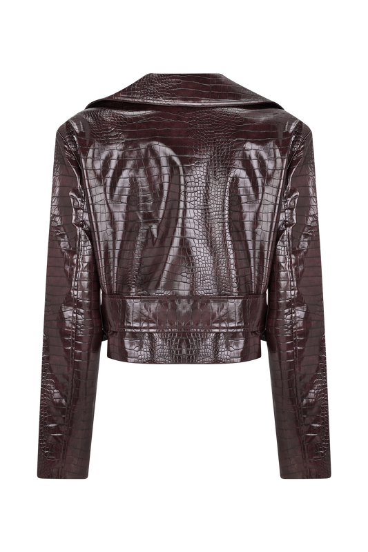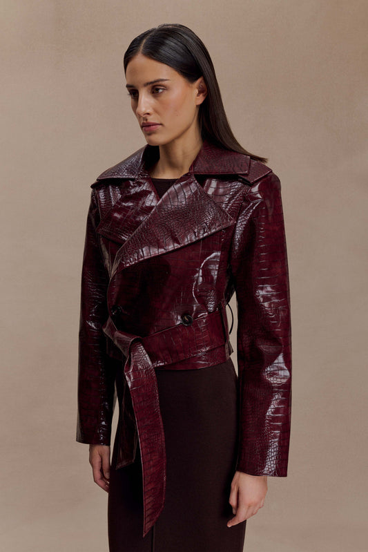Archie Croc Faux Leather Cropped Jacket - Burgundy
