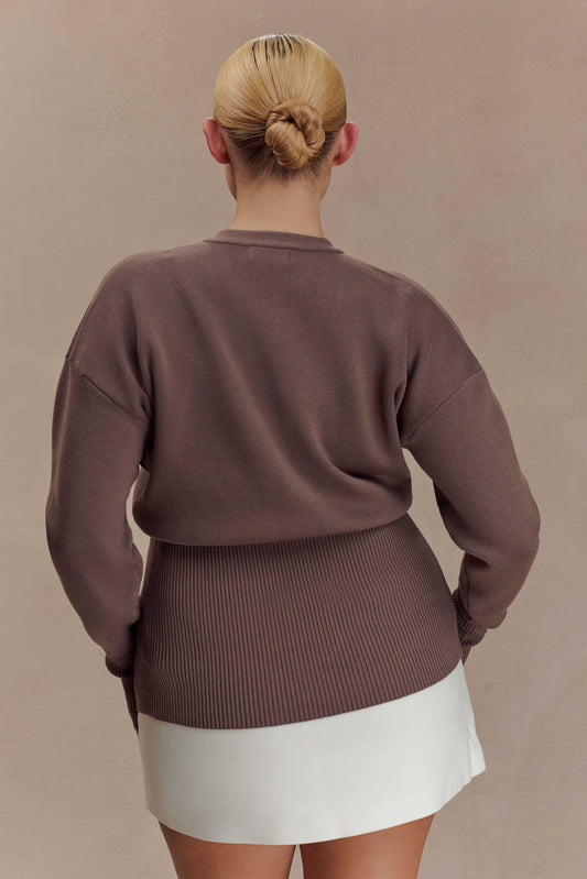 Mertyle Aysmetrical Knit Jumper - Deep Chocolate