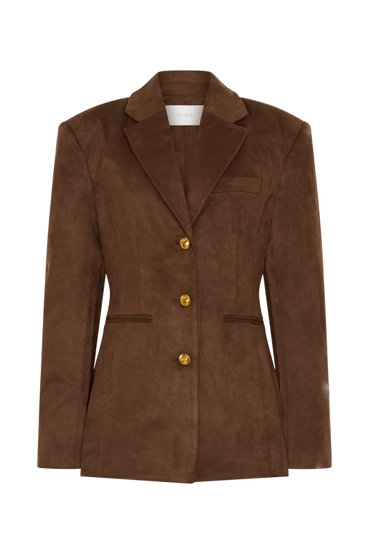 Sally Faux Suede Cinched Blazer - Milk Chocolate