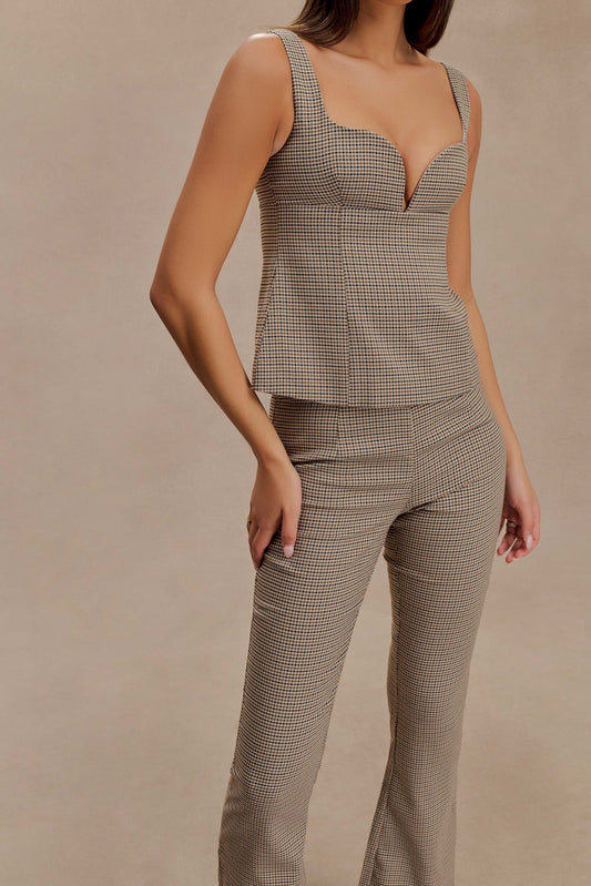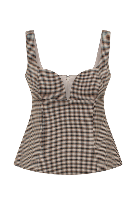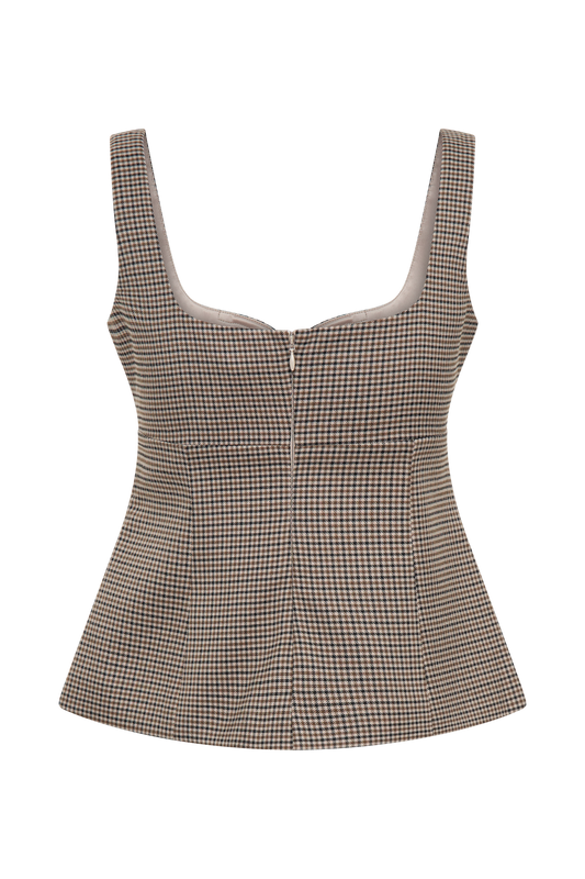 Lawry Structured Longline Top - Tan Check