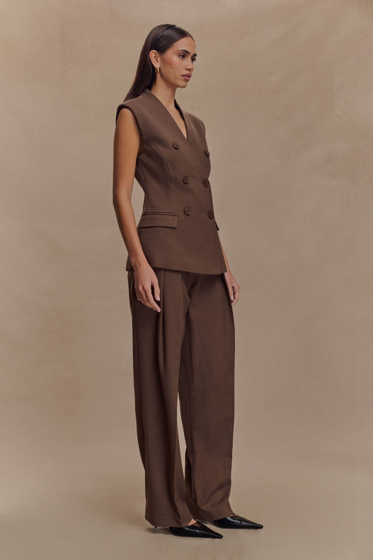 Penelope Suiting Sleeveless Blazer - Chocolate