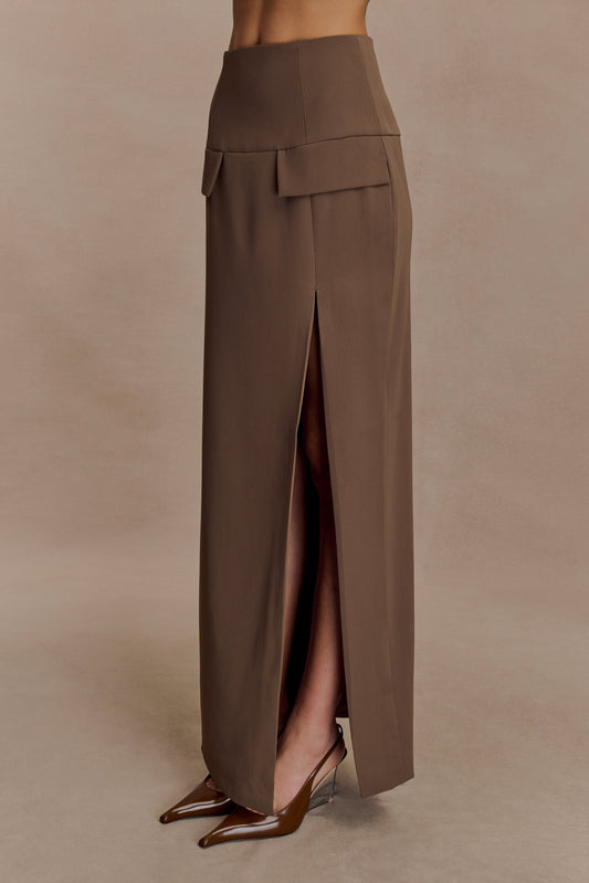 Cassie Column Maxi Skirt - Cacao Brown