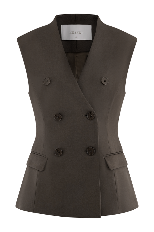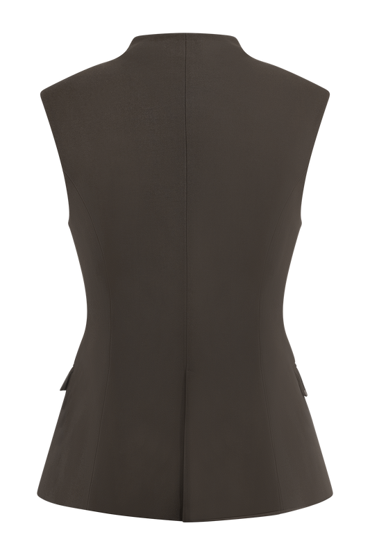 Suiting Sleeveless Blazer - Chocolate