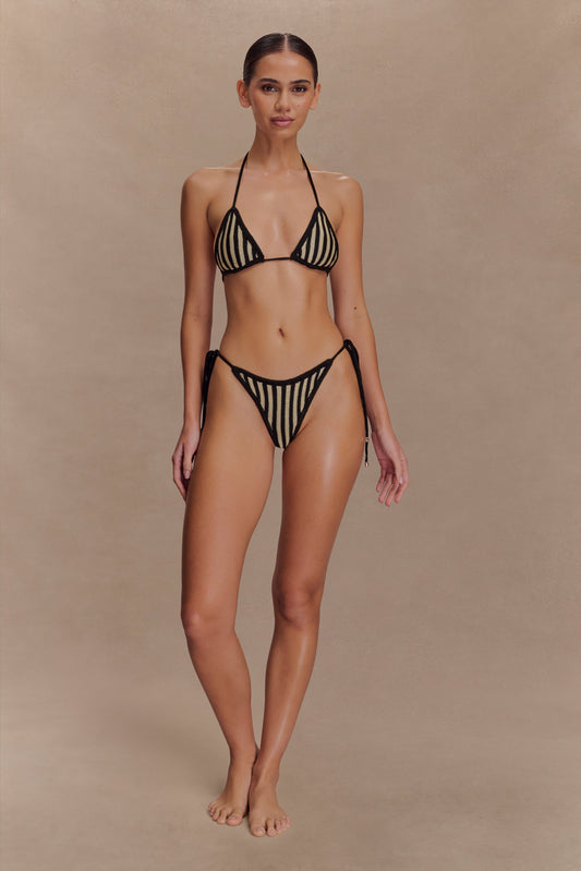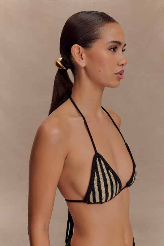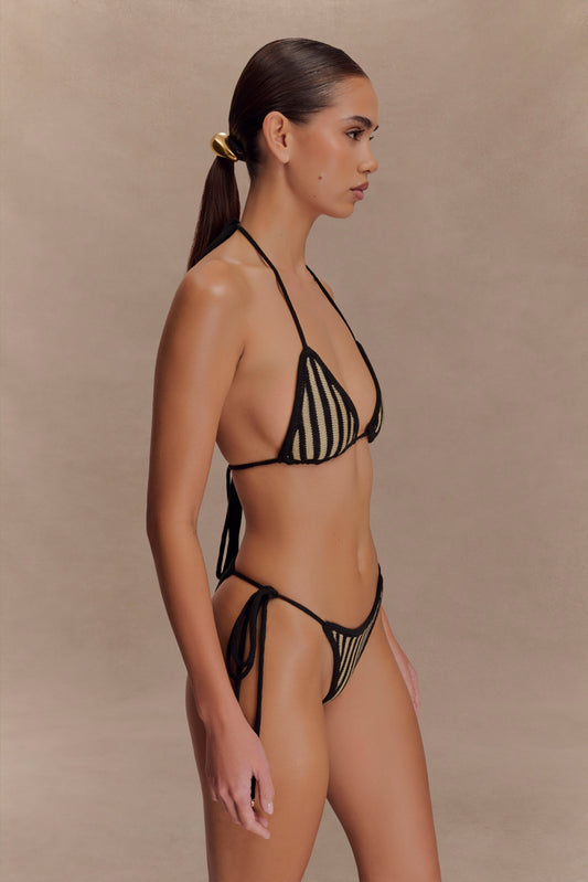 Corrie Crochet Tie Up Bikini Top - Black And Neutral Stripe