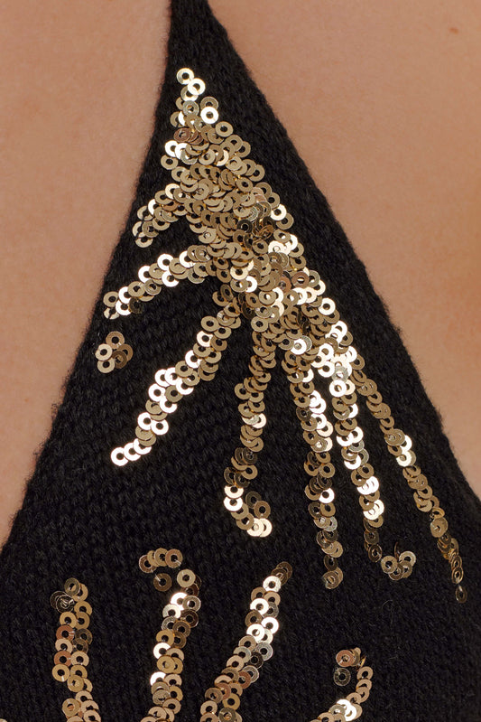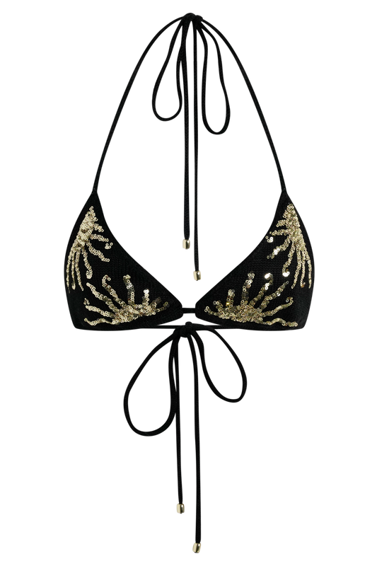 Crochet Bikini Top - Black & Gold Sunshine Print