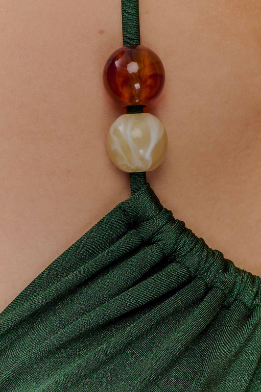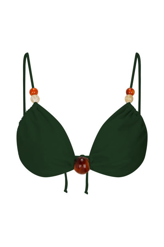 Ruched Bikini Top - Green Fluid Reverie Print