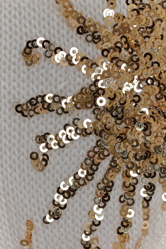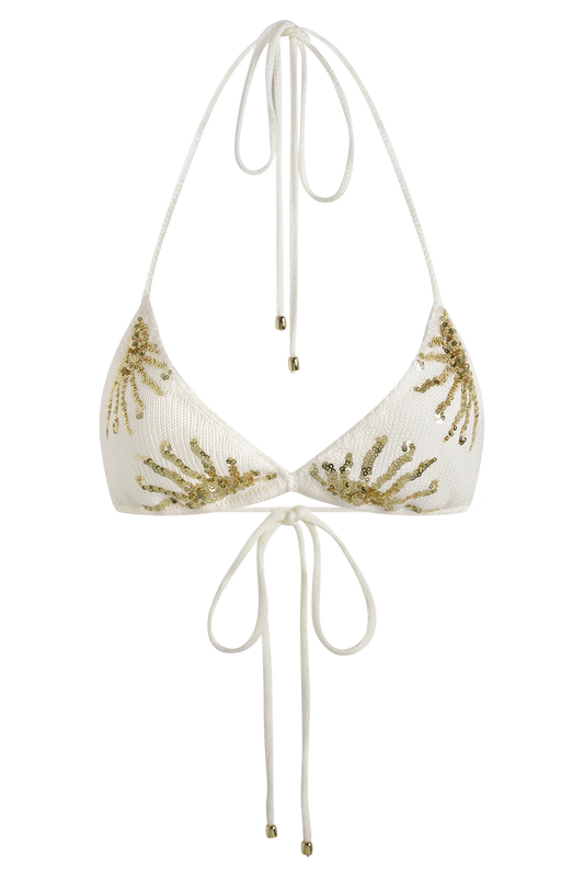 Crochet Bikini Top - White & Gold Sunshine Print