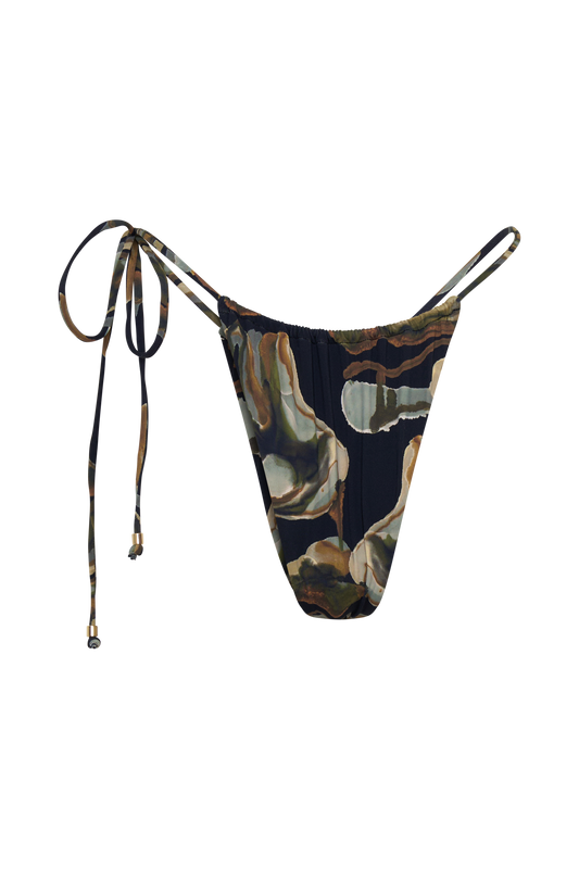 Ruched String Side Bikini Brief - Green Fluid Reverie Print