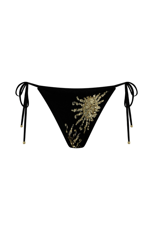Crochet Bikini Bottom - Black & Gold Sunshine Print