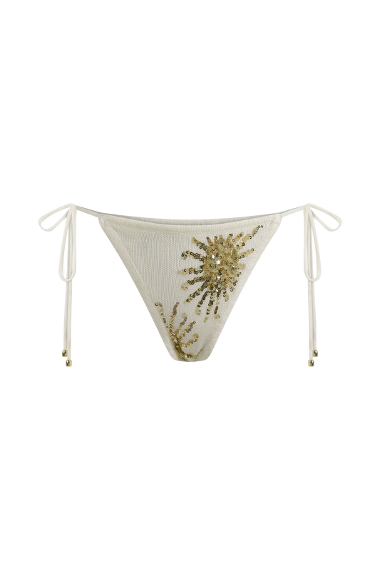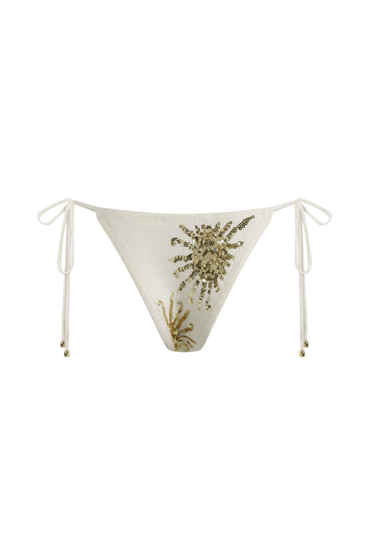 Huntleigh Crochet Bikini Bottom - White & Gold Sunshine Print