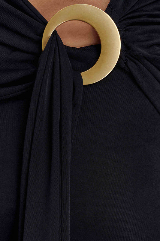 Mattea Slinky And Mesh Mini Dress With Scarf - Dark Chocolate