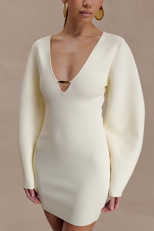 Billy Balloon Sleeve Knit Mini Dress - Ivory