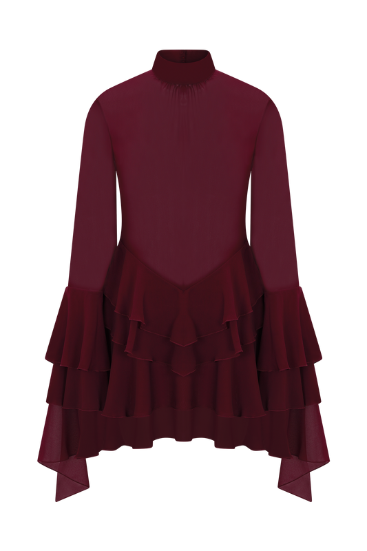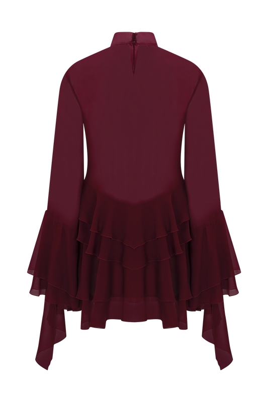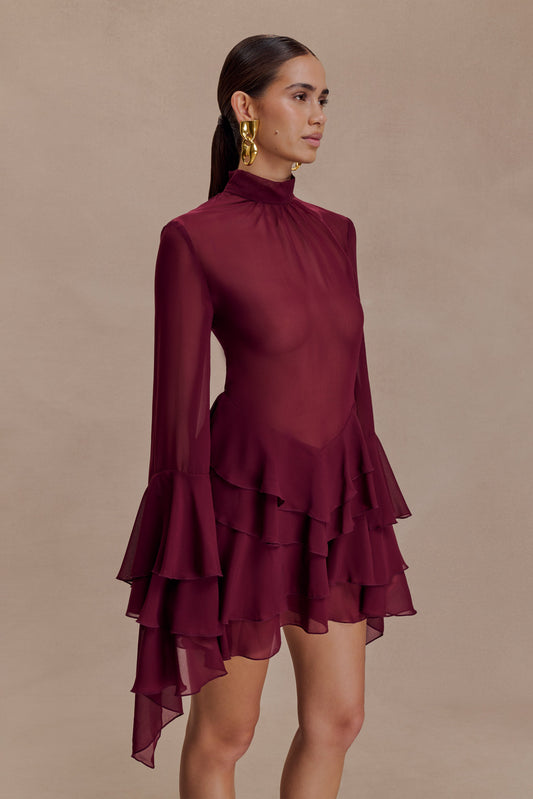 Nimah Chiffon Ruffle Mini Dress - Wine