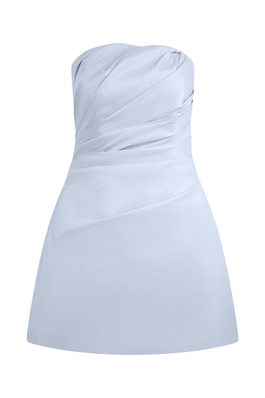 Leslie Gathered Taffeta Mini Dress - Frosted Blue