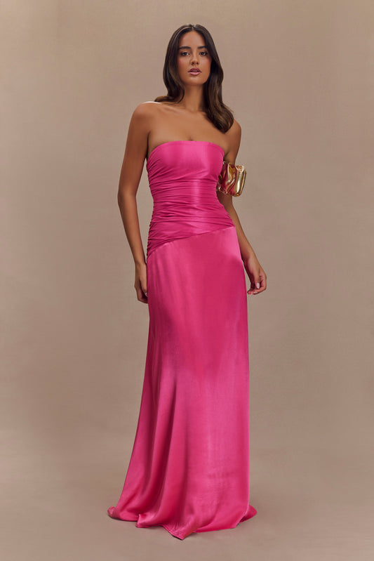 Serena Strapless Taffeta Maxi Dress - Crimson Pink