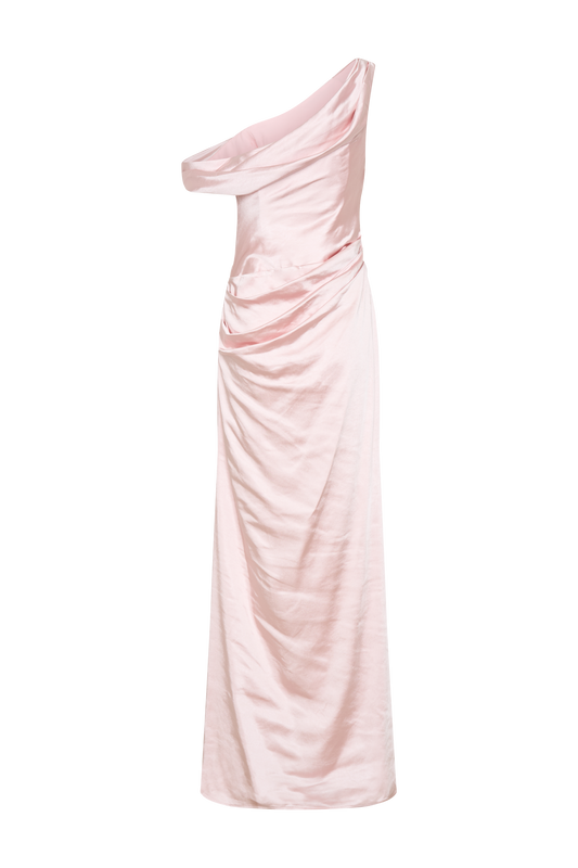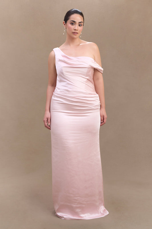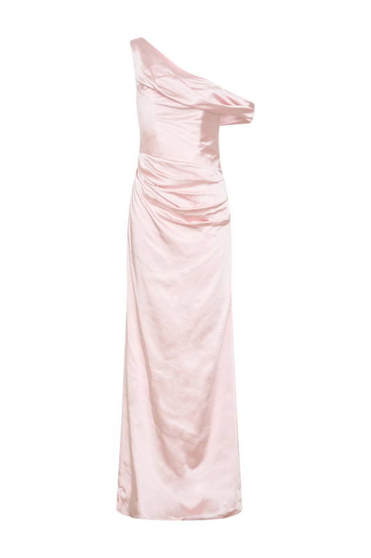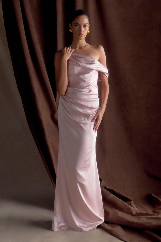 Dalia Off Shoulder Satin Maxi Dress - Soft Pink