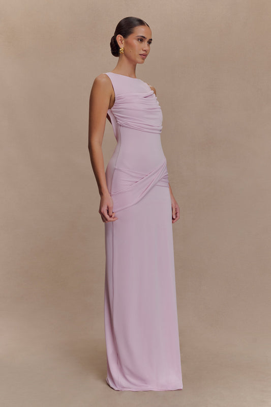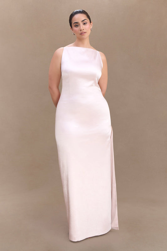 Violet Sleeveless Satin Maxi Dress - Soft Pink