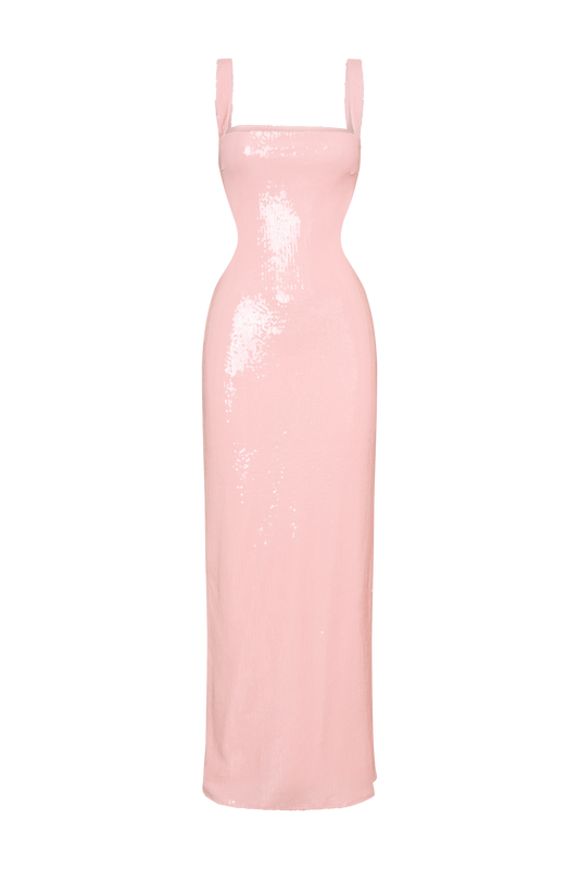 Lilly Sweetheart Satin Maxi Dress - Soft Pink