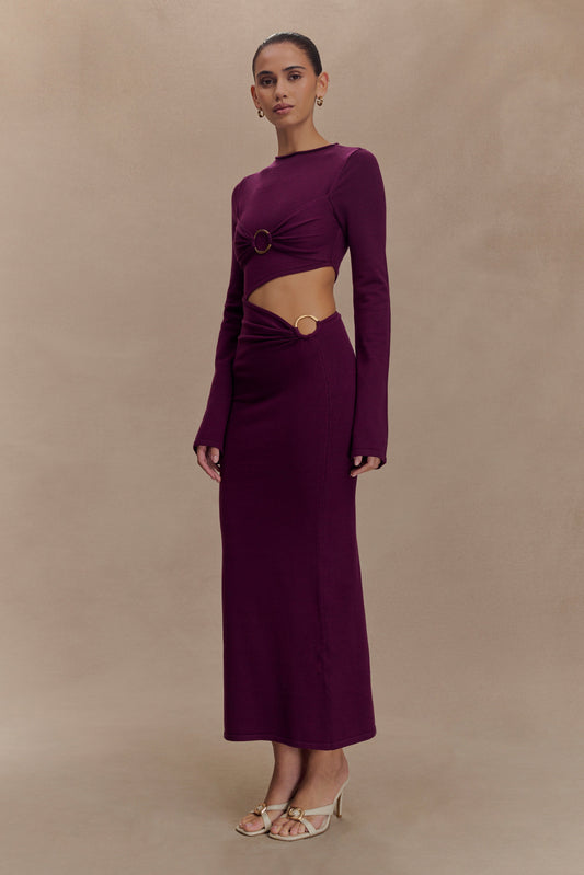 Marisol Off Shoulder Boucle Maxi Dress - Plum