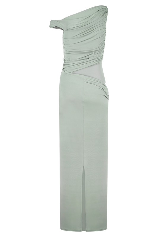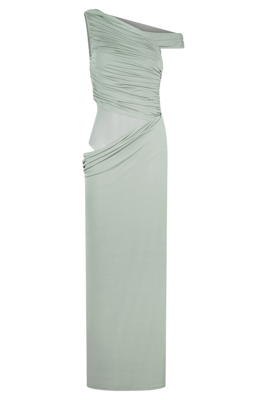 Larissa Satin Maxi Dress With Ruched Petals - Blush Gold
