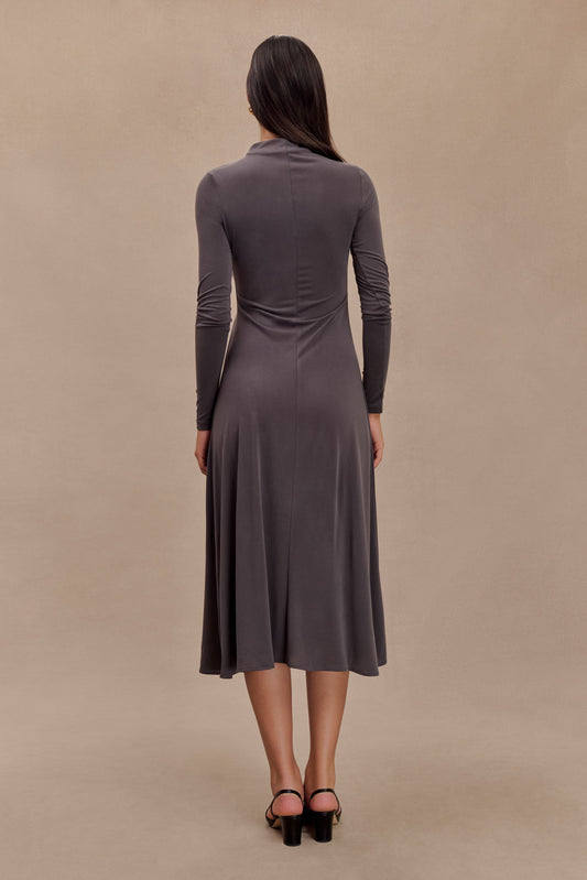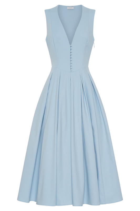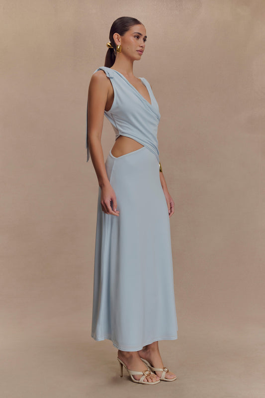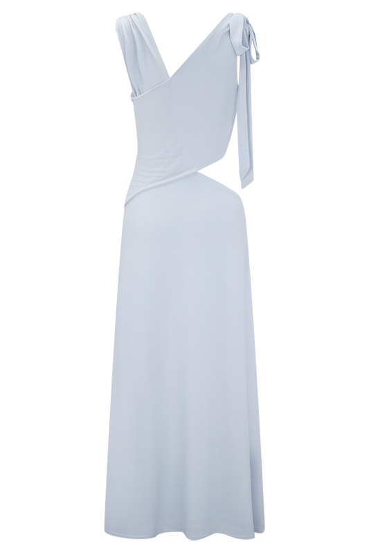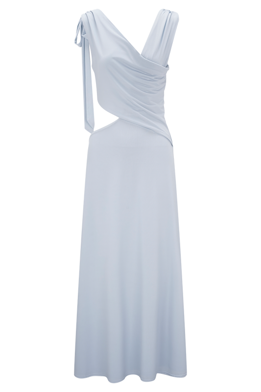 Raleigh Asymmetrical Slinky Midi Dress - Pale Blue