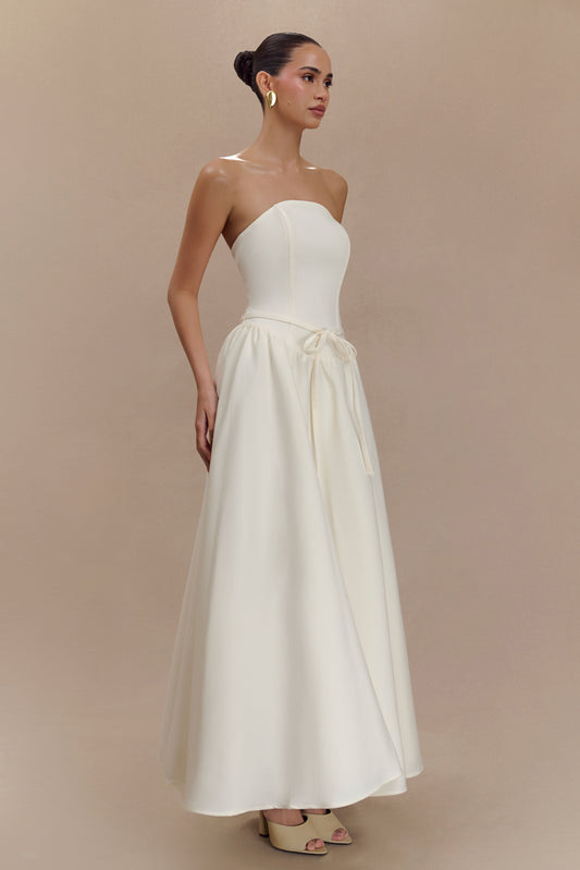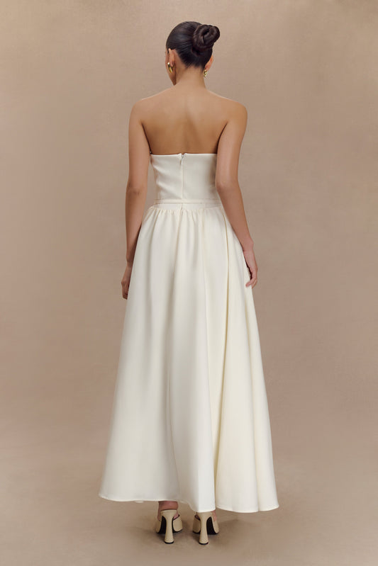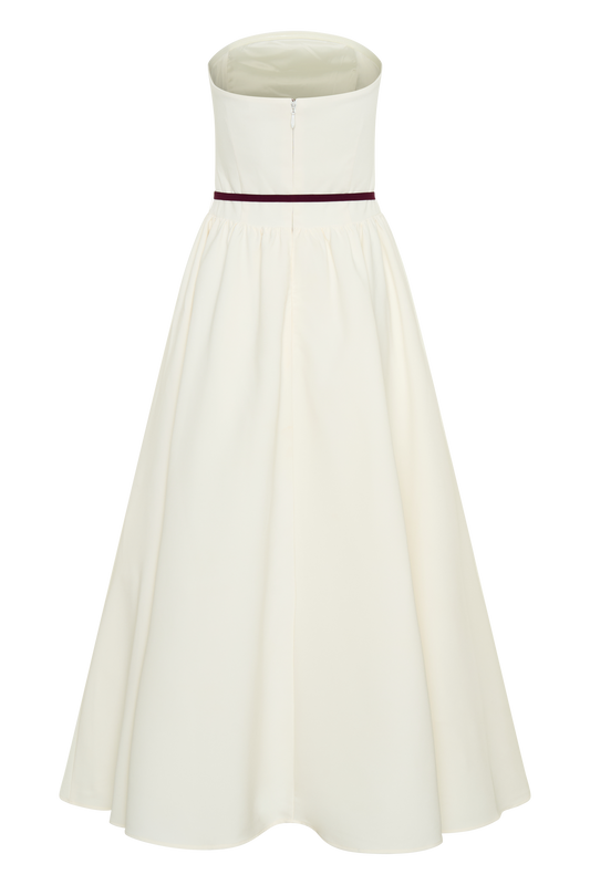 Strapless Contrast Midi Dress - Ivory & Burgundy