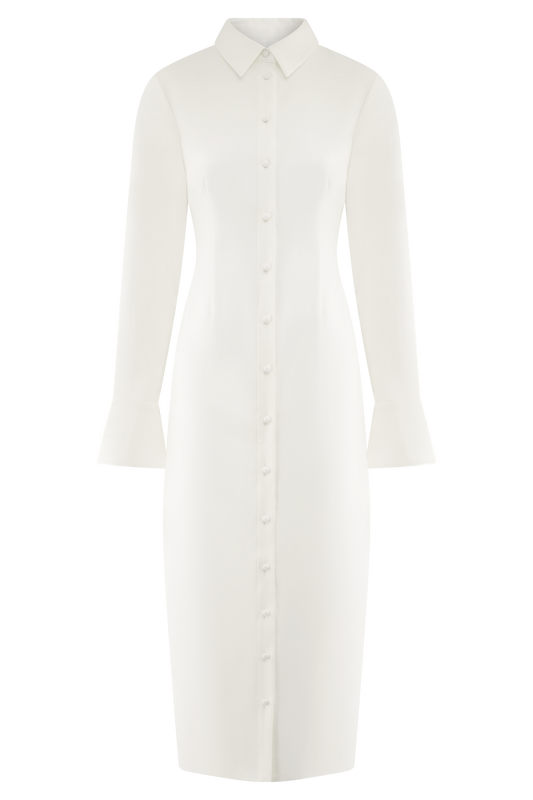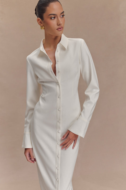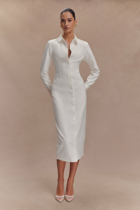 Dorian Fitted Shirt Midi Dress - White
