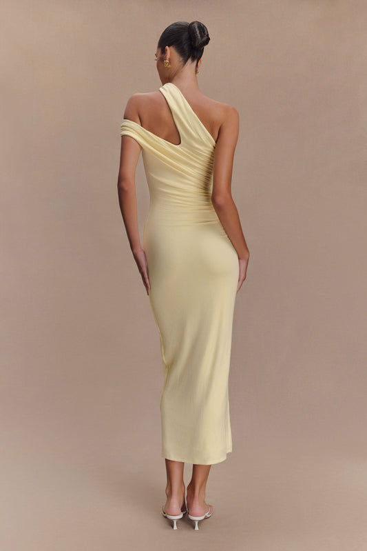 Anastasia One Shoulder Modal Midi Dress - Pale Lemon
