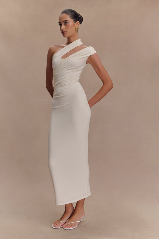 Anastasia One Shoulder Modal Midi Dress - Ivory