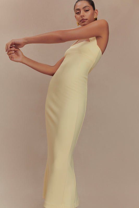 Amelita Suiting Halter Midi Dress - Pale Lemon