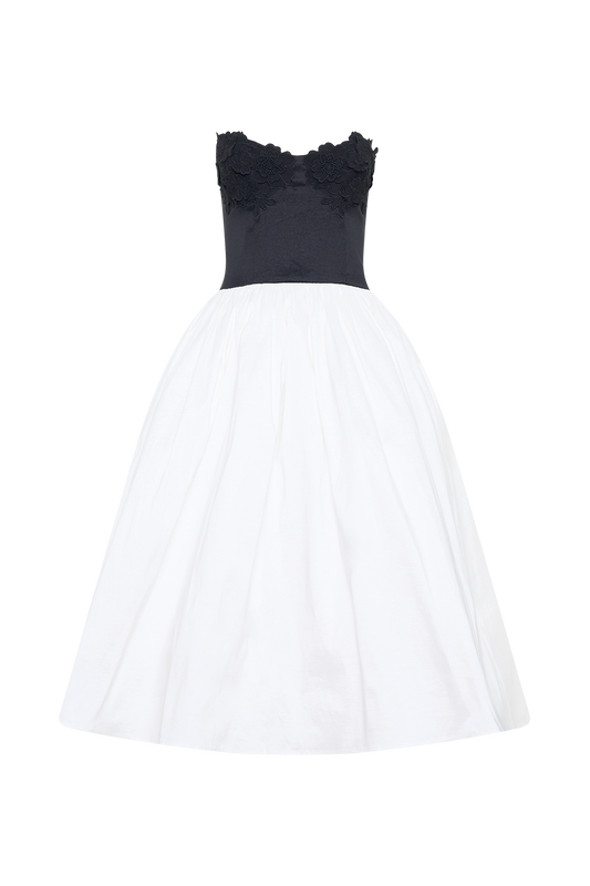 Elyssa Embroidered Contrast Midi Dress - Black/White