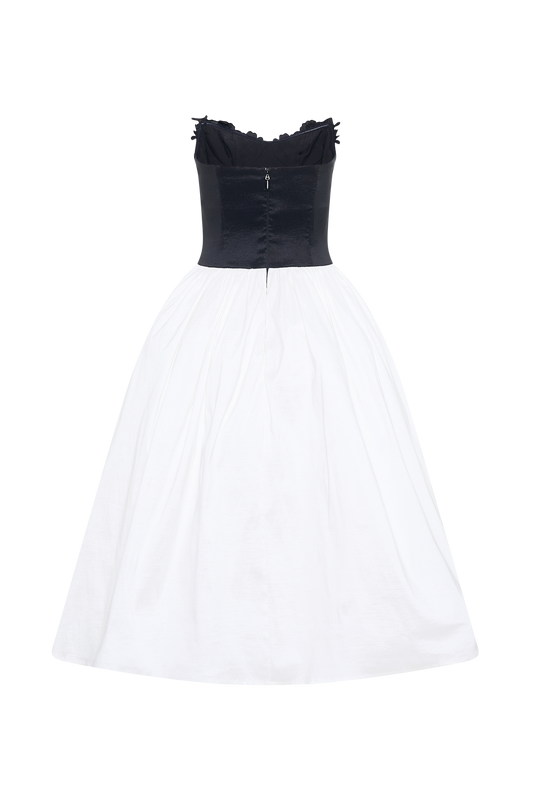 Embroidered Contrast Midi Dress - Black/White