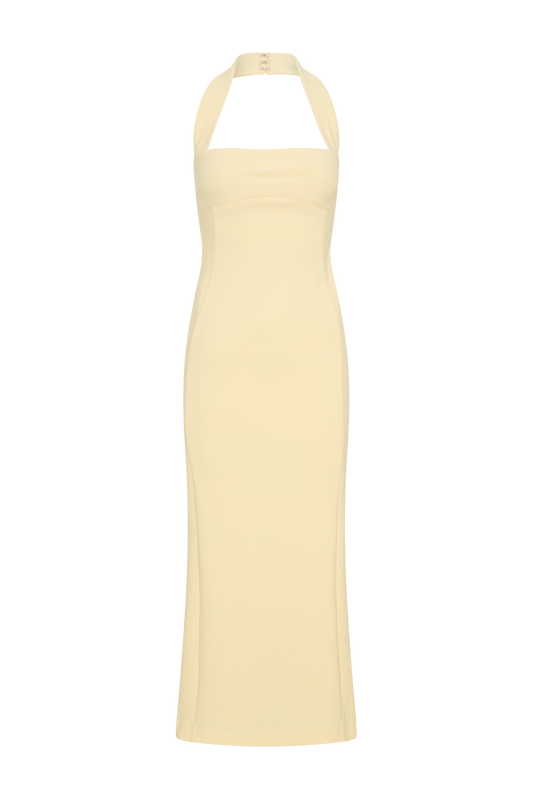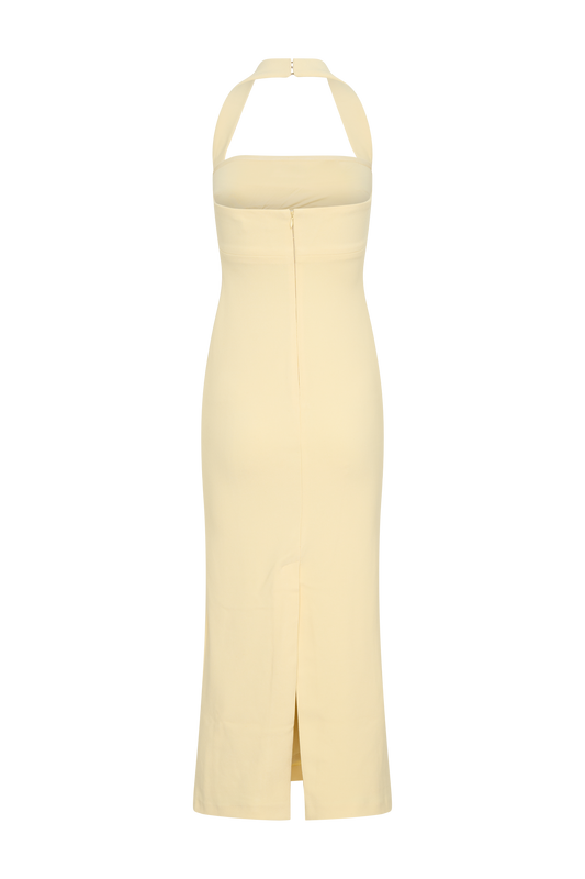 Suiting Halter Midi Dress - Pale Lemon