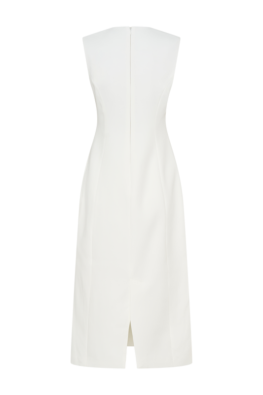 Suiting Sleeveless Midi Dress - Ivory