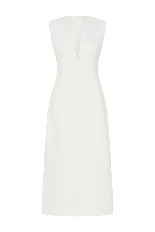 Audrine Suiting Sleeveless Midi Dress - Ivory