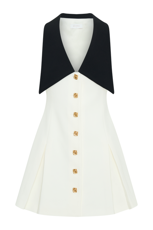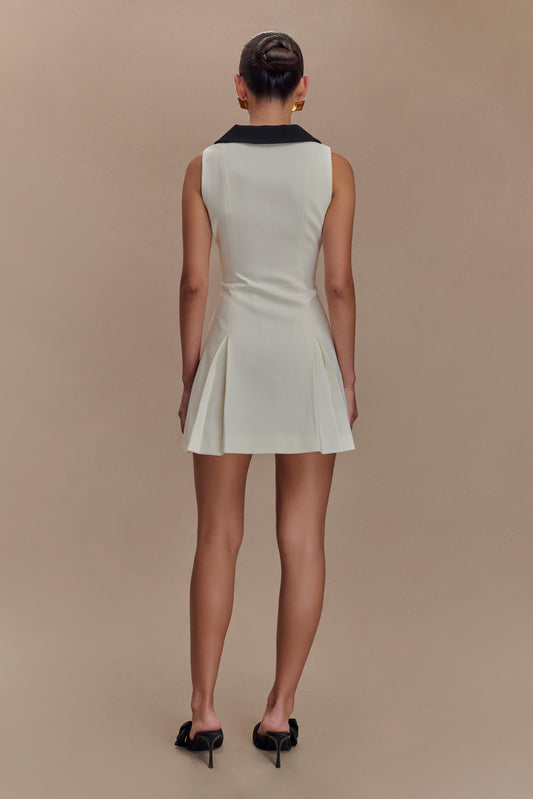 Sleeveless Contrast Mini Dress - Ivory/Black