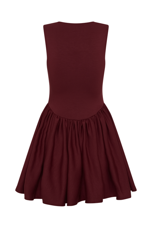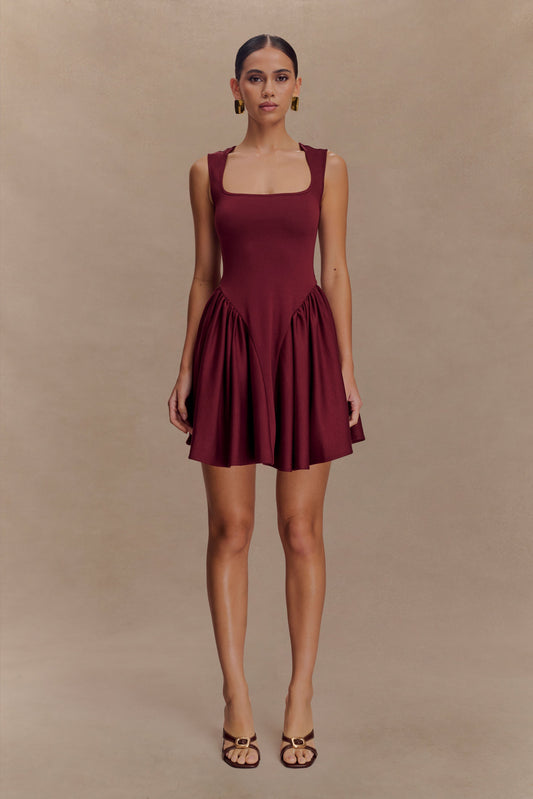 Sharon Scuba Jersey Mini Dress - Wine